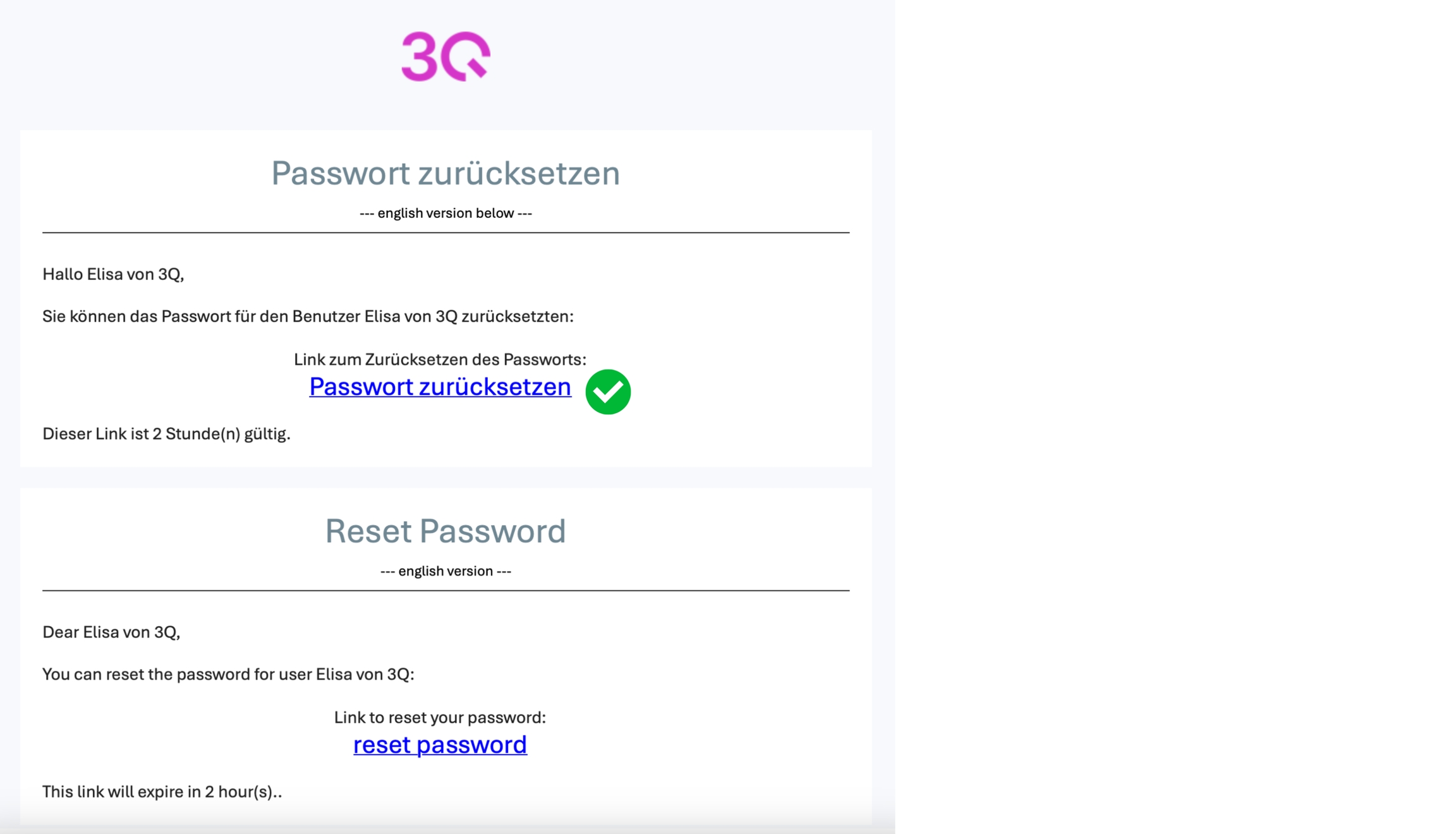 Betreff: "Passwort zurücksetzten/Reset Password"