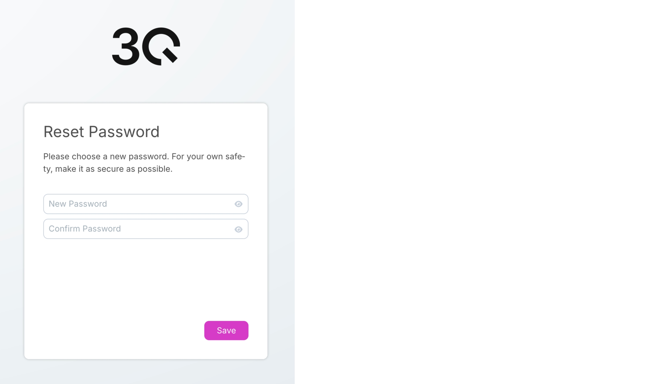 Hier hinterlegen Sie das neue Passwort zwei mal und speichern dann die Eingabe. Im Anschluss können Sie sich mit Ihrer E-Mail-Adresse und dem neuen Passwort unter https://platform.3qsdn.com/login anmelden.