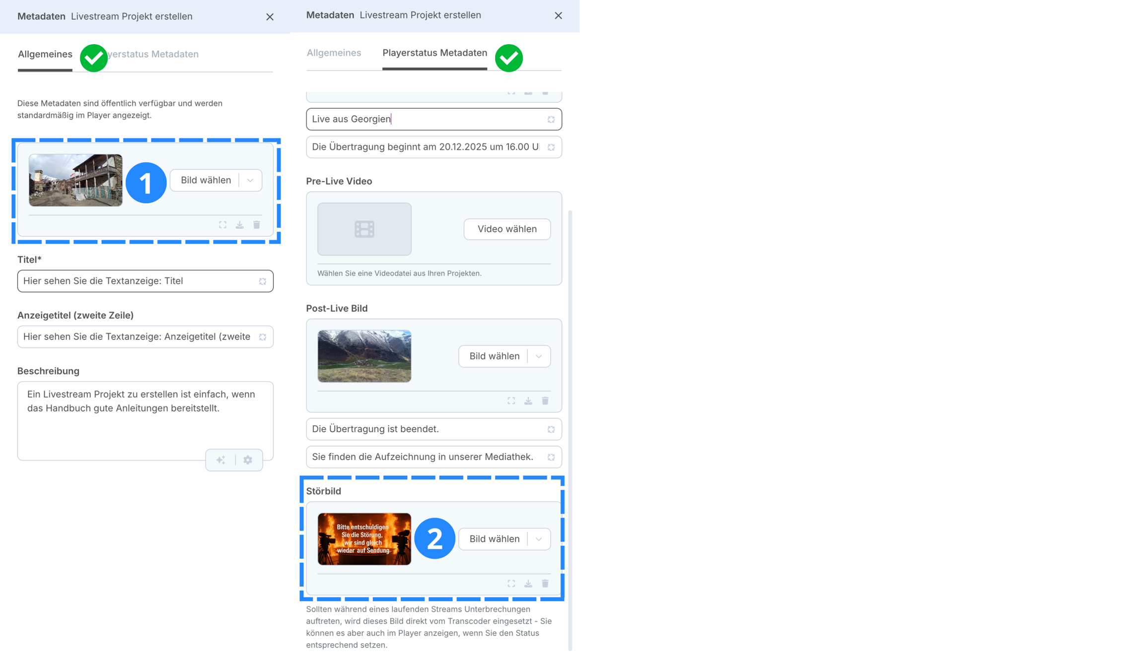 Es können zusätzlich Bilder für den Pre- und Post-Live-Status hinterlegt sowie ein Pre-Live Video aktiviert werden.