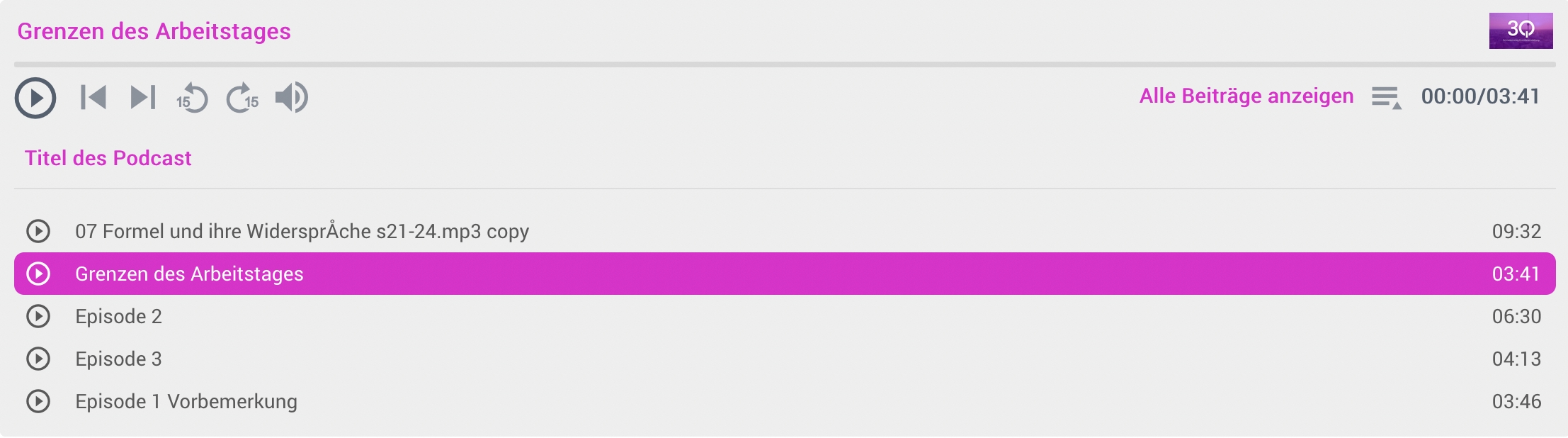 Das Design und die Funktionalität des Player können Sie über das Kofigurationsmenü und die Player-API an Ihre Erfordernisse anpassen.