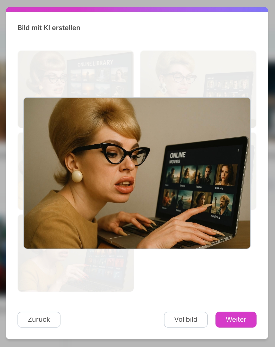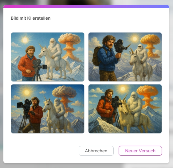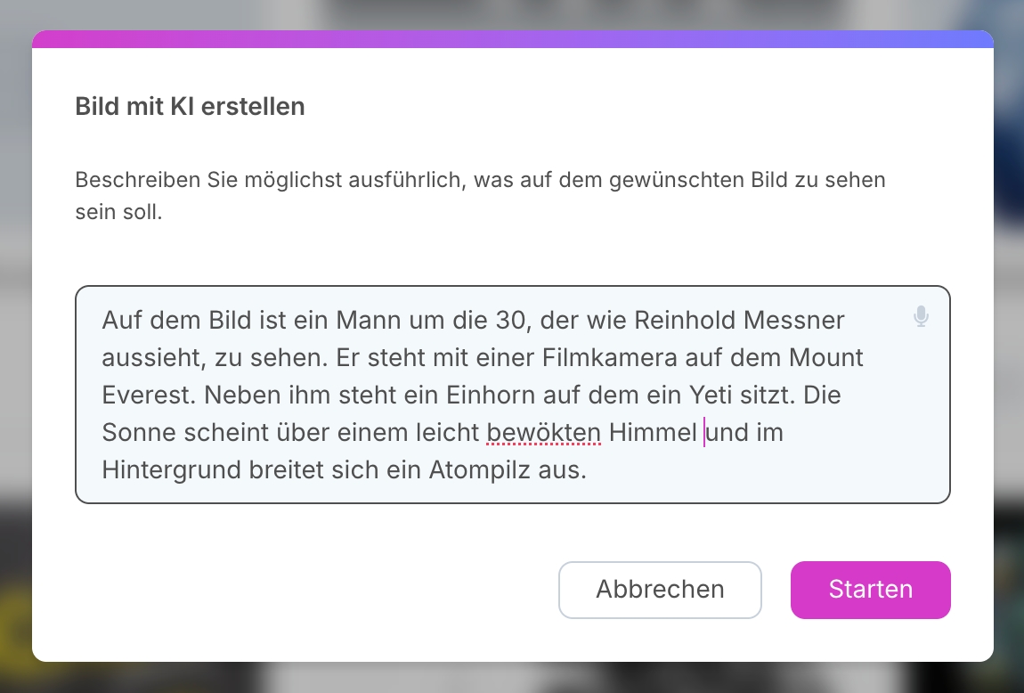 über das Icon "Chevron-down" die Option "Bild mit KI erstellen" wählen.